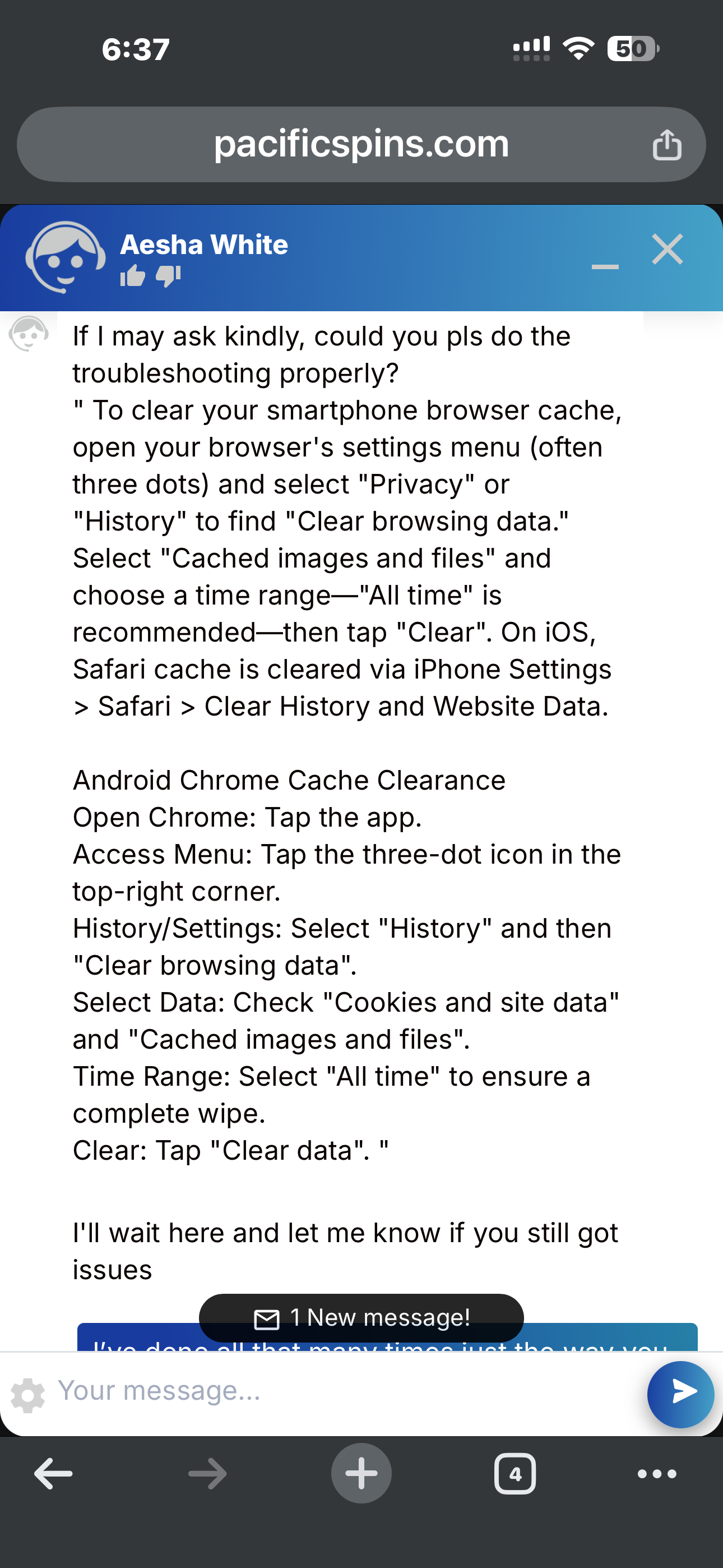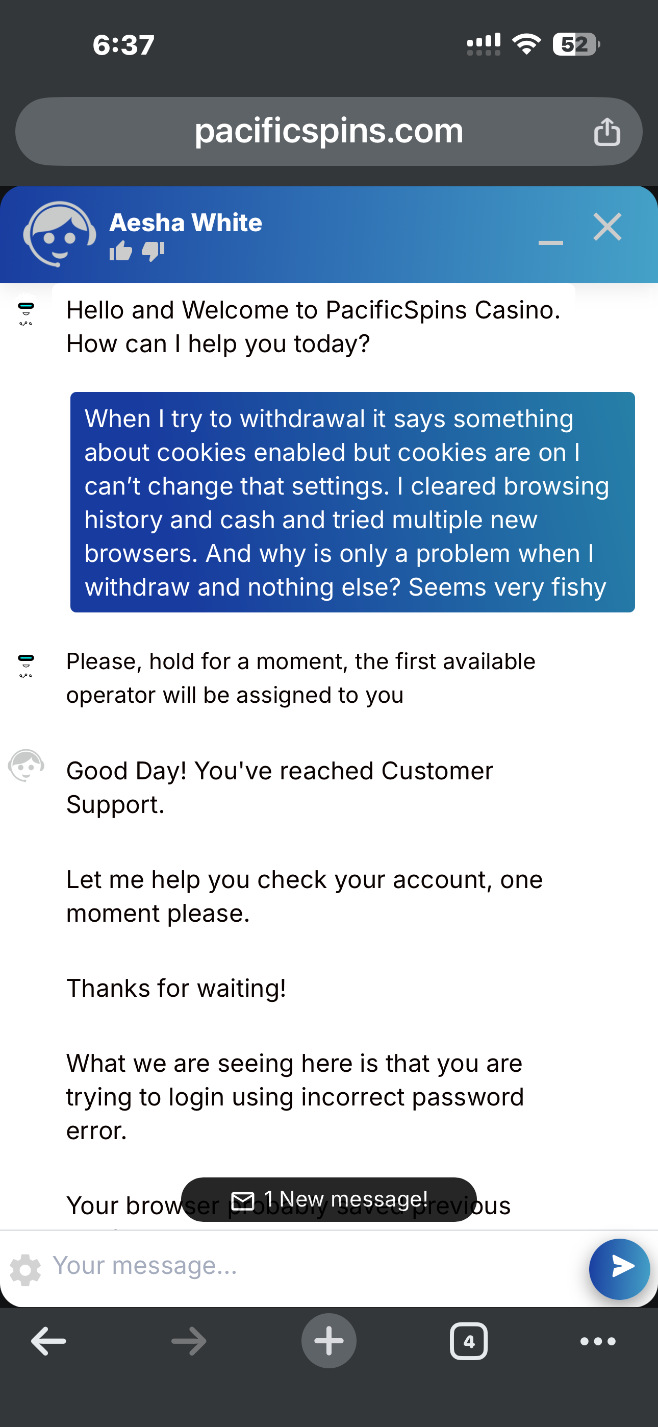 In addition, I attempted to resolve the matter directly with the casino prior to filing the complaint. I sent emails to both payments and support without receiving any response. When I finally reached live chat, the representative offered a $20 free chip for the inconvenience, but this was never issued.