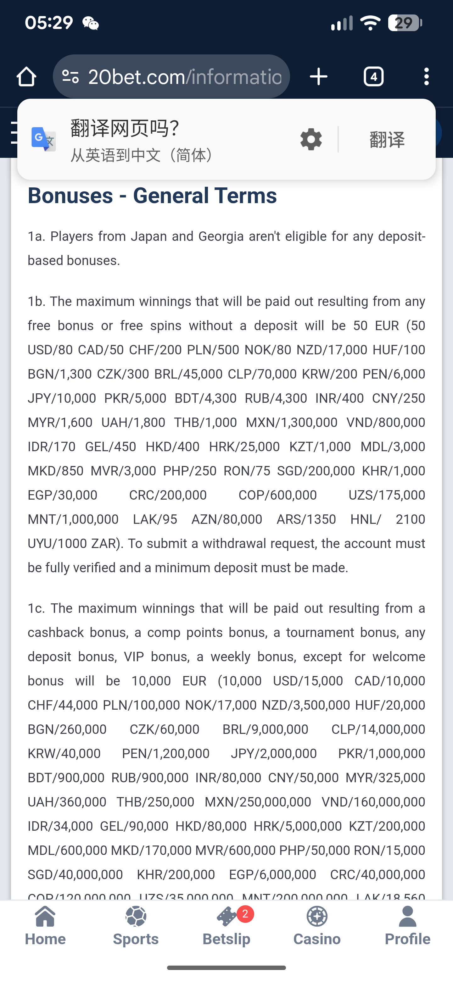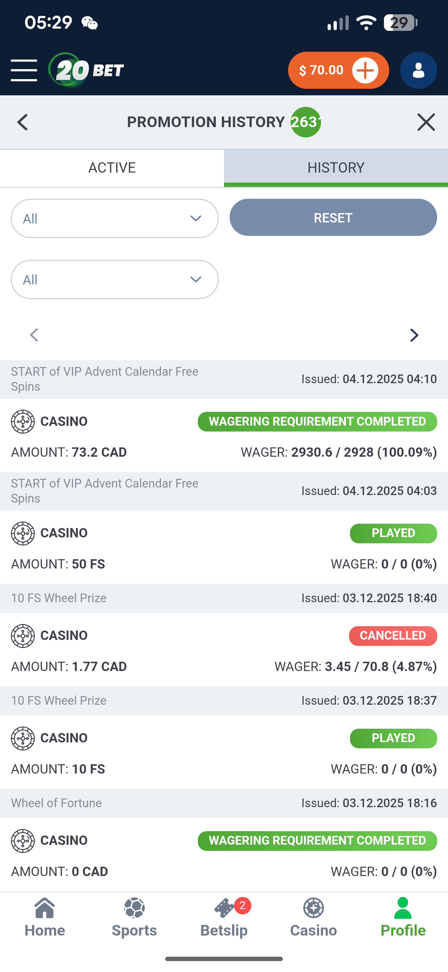 The I have a VIP bonus at 20bet casino and had a winning of 3800cad.he amount after wagered should not be capped at 80 CAD after wagered should not be capped at 80 CAD But after I completed the wagering requirement, the balance has capped incorrectly. Can someone help me on this issue please?