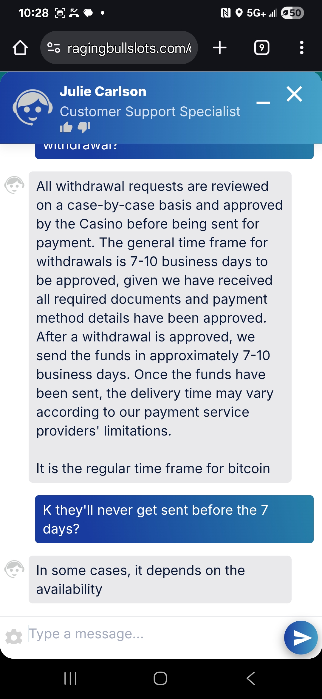 Legal / Dispute Department Raging Bull Casino support@ragingbullslots.com