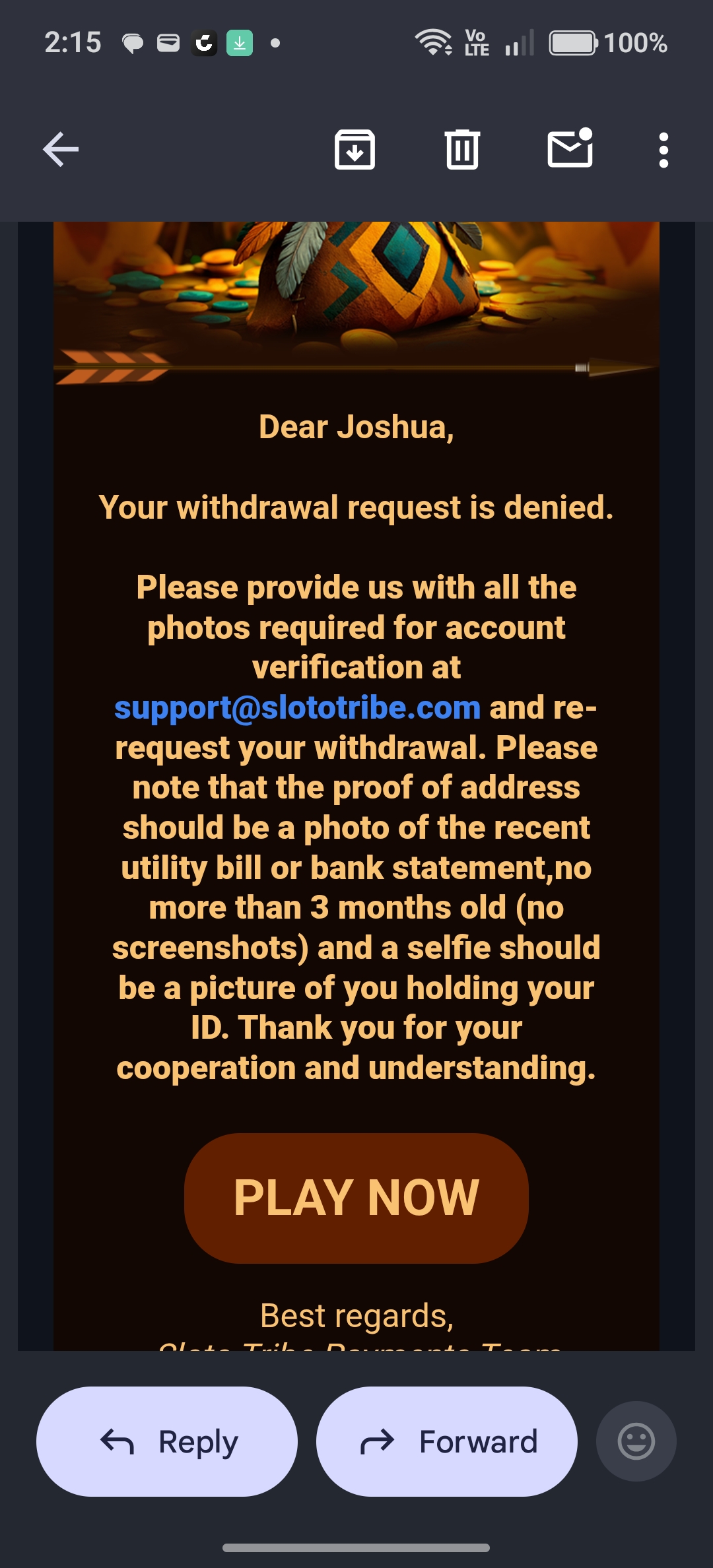 Additionally, after checking your chat and email history, we can confirm that you were never asked to make a $20 deposit. Please be reminded that sharing inaccurate information is strictly prohibited under our Terms of Service.
