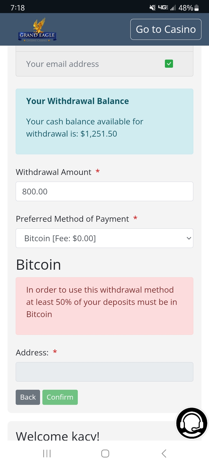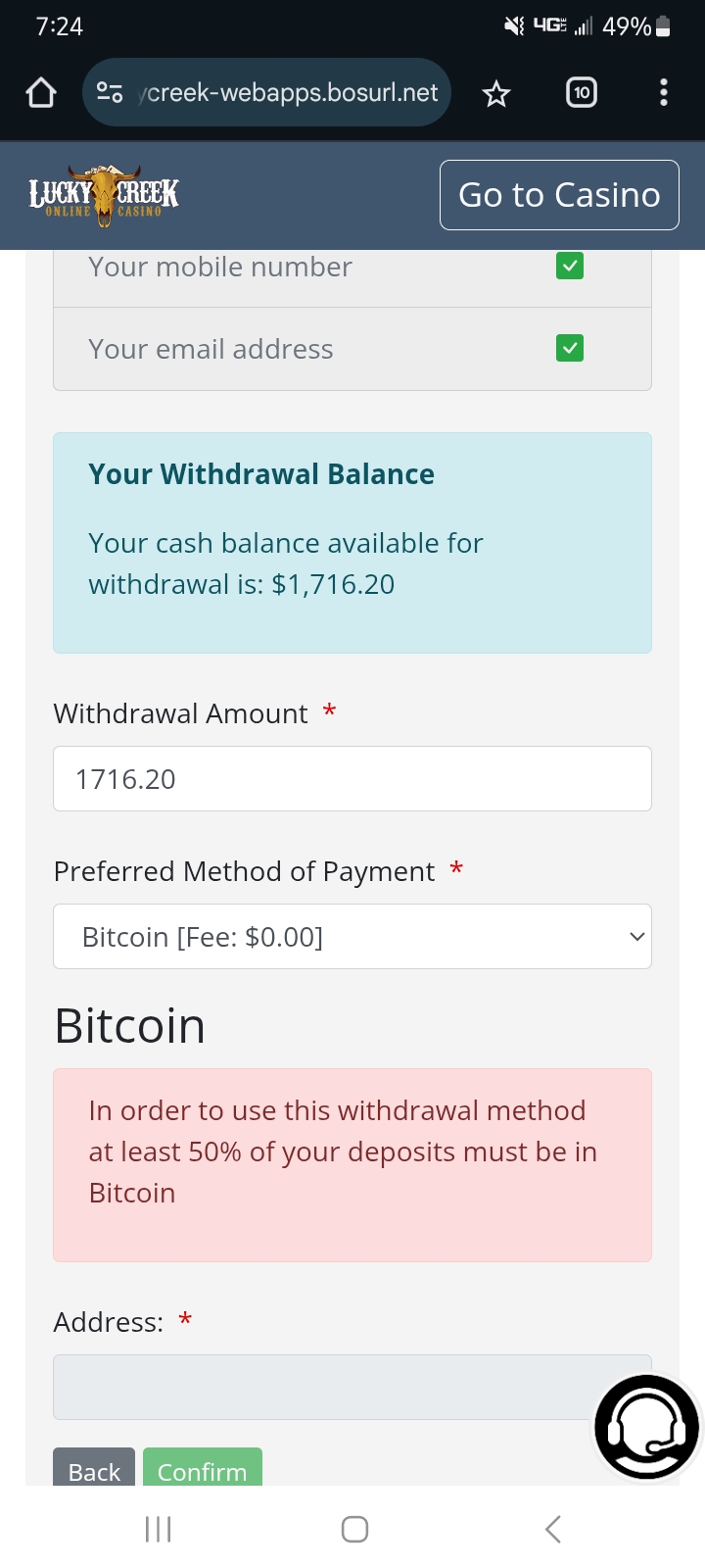 Le joueur n'a pas effectué le retrait, car il dispose encore d'argent sur son compte casino. Ce compte présente deux soldes. Comme indiqué dans la première réponse, pour effectuer un retrait, le joueur doit l'initier en utilisant les champs de virement et en y ajoutant son adresse BTC.