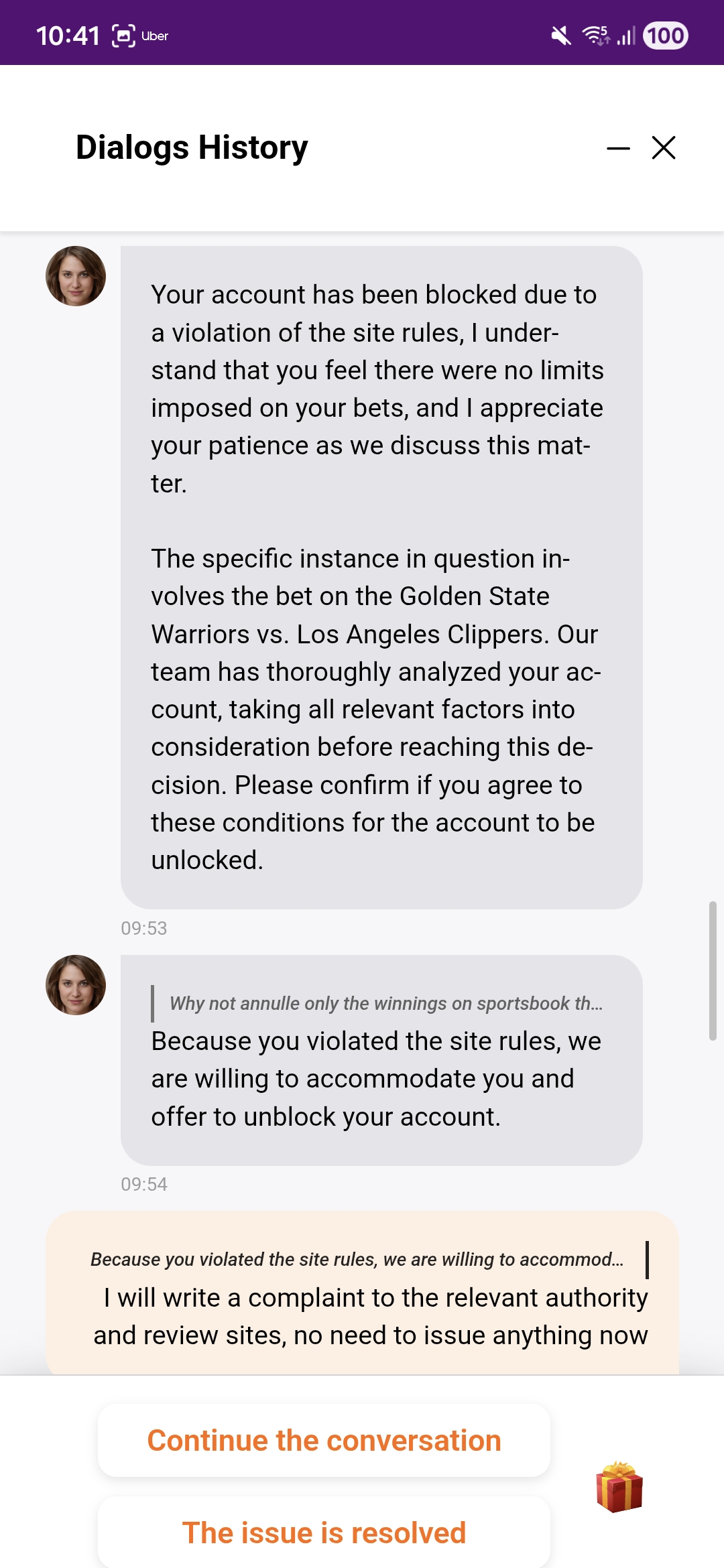 After my deposit were made, placed a smaller bet on Chicago Bulls to win against Atlanta Hawks prematch and played slots with the remaining funds. After winning on casino, placed two more bets on the same team/match that were now in play totaling 3 bets. Asked the support regarding that, but they did not answer. Other bets prior to the Golden State match weren't seen as abuse, while no issues prior to the large win occured, as the sports related winnings were pending for several days.