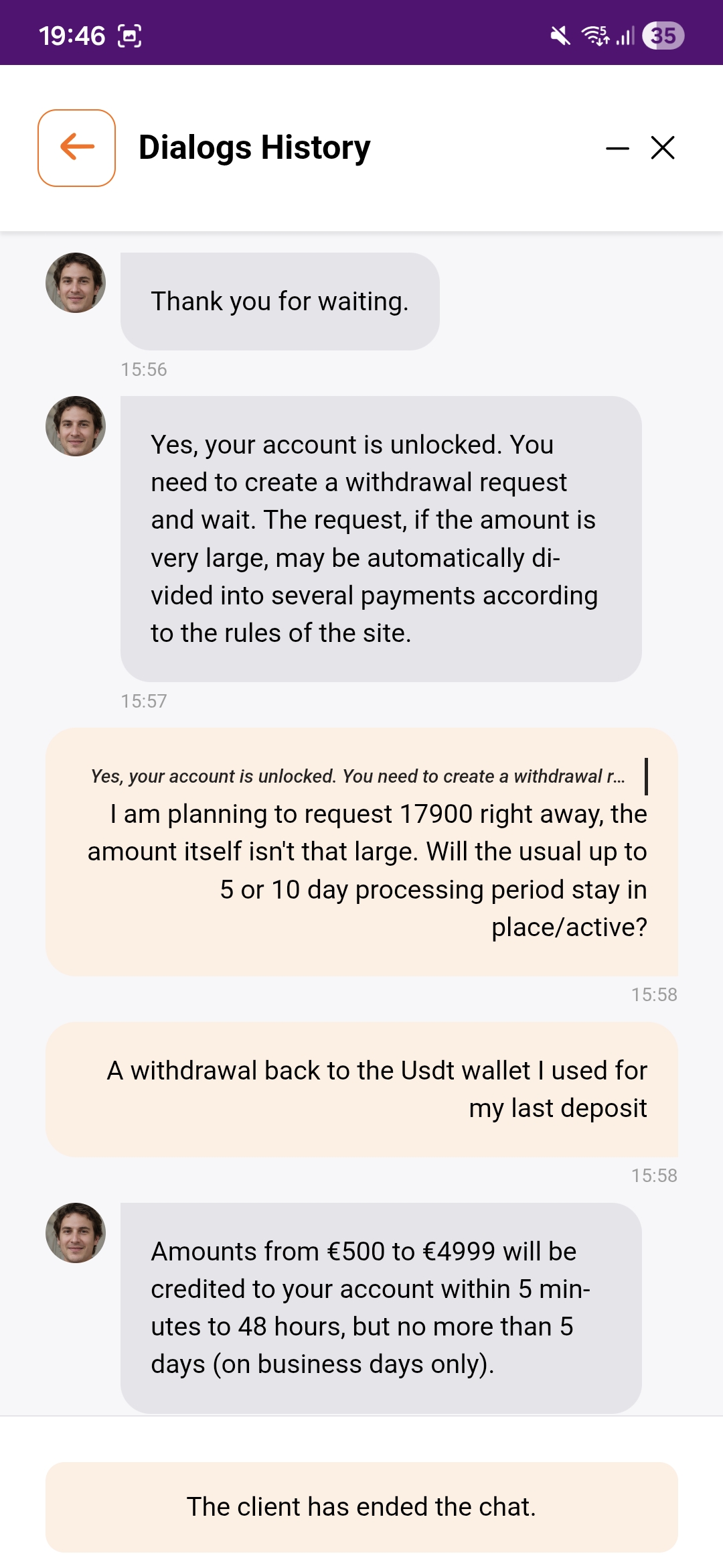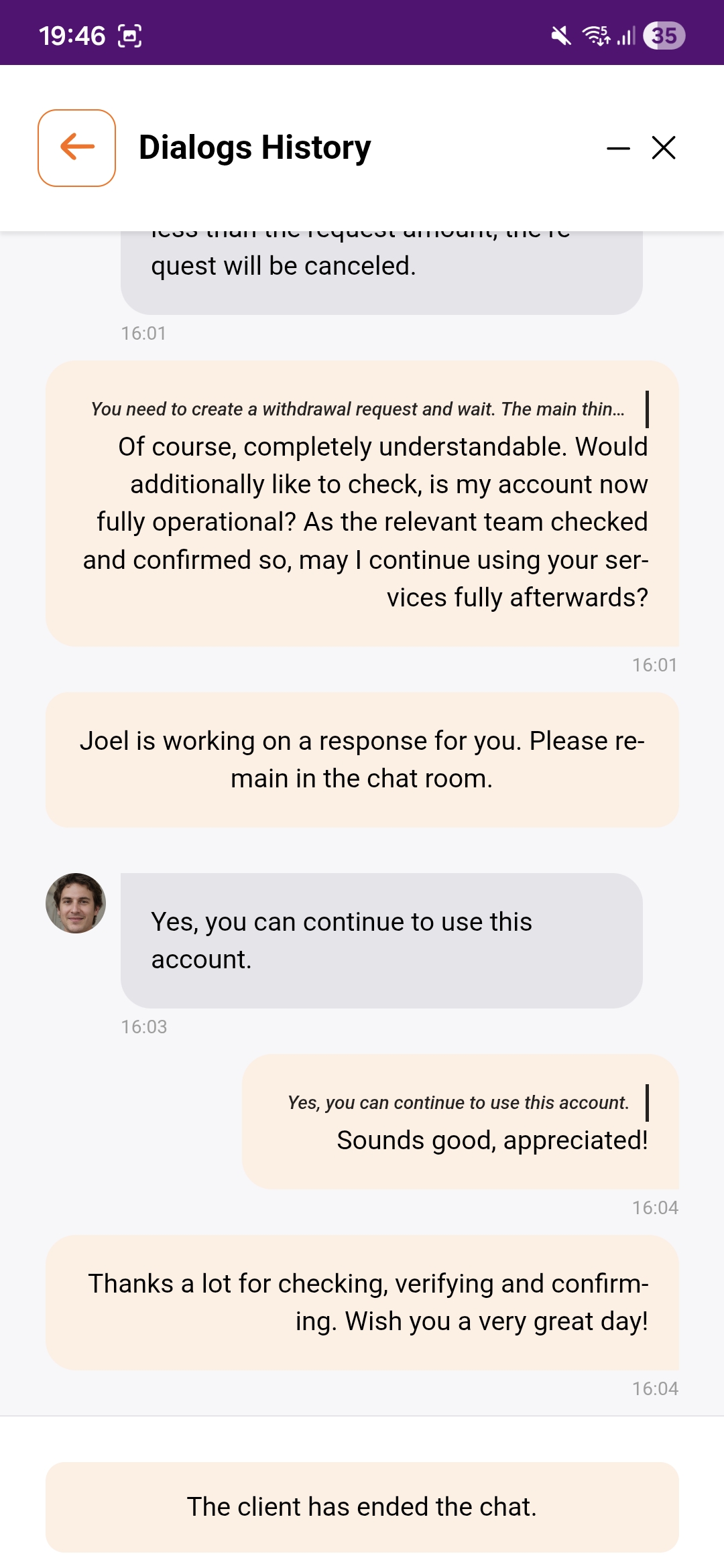 Hello Jovana! That is correct, I sent a formal complaint with a document attached + an additionally explained earlier today. Used their official complaint email and recieved a response that my account is fully operational, while the funds are still in the account and available for withdrawal. Requested all funds to be withdrawn today and will gladly report back once the amount arrives